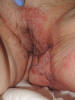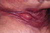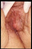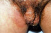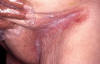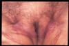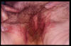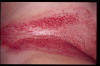 Intértrigo candidiásico en ingle y pliegue abdominal.