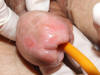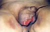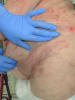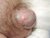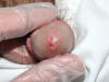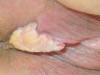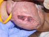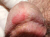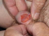 Enf de Bowen del glande. Ulceración en piel sana por el citostático local.