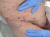 Carcinoma epidermoide en ingle. Evolución final. Metástasis en piel de muñón.