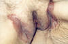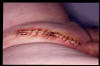 UPP en escroto por uso no adecuado de pañal de incontinencia.