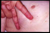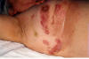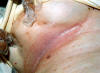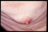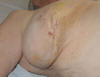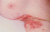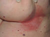 Intértrigo candidiásico submamario. En paciente con pénfigoide.