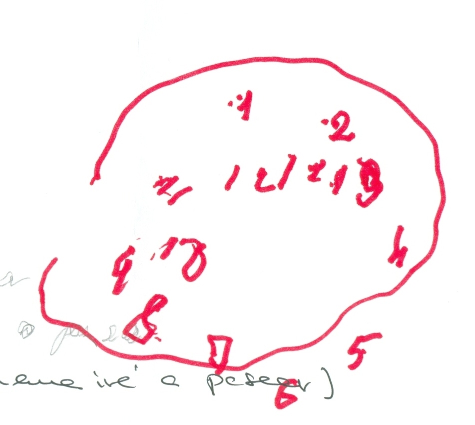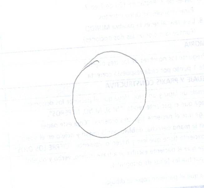 Transformación del objetivo del dibujo. De cara a mesa por lesión talámica izquierda. D. Alzheimer/mixta GDS 6.