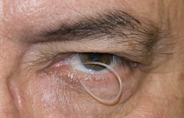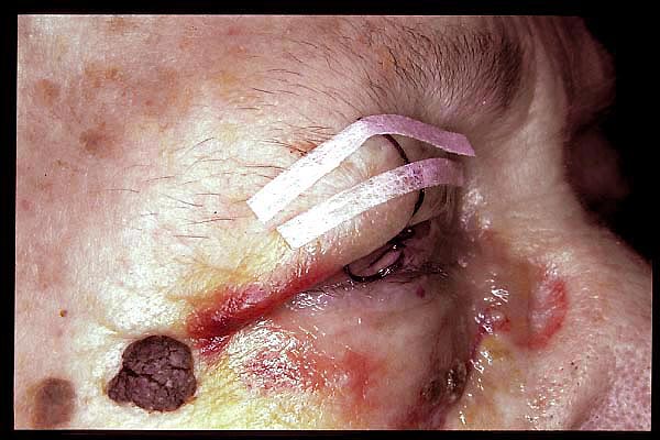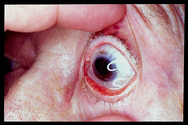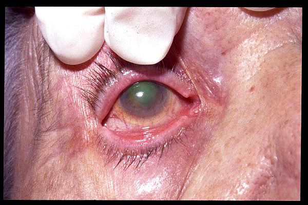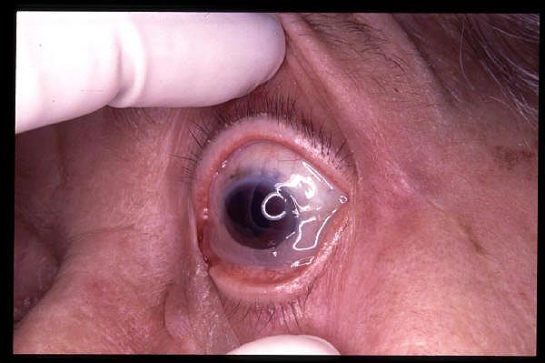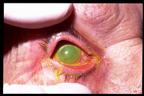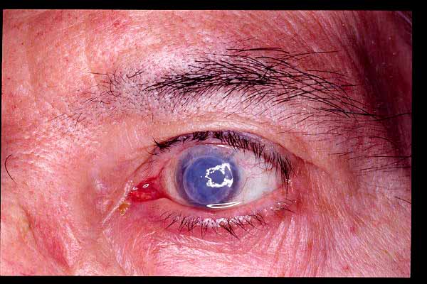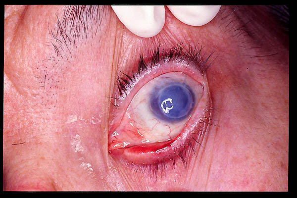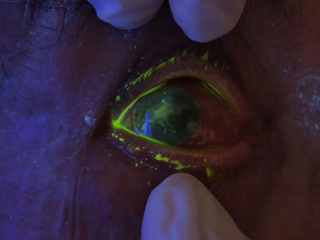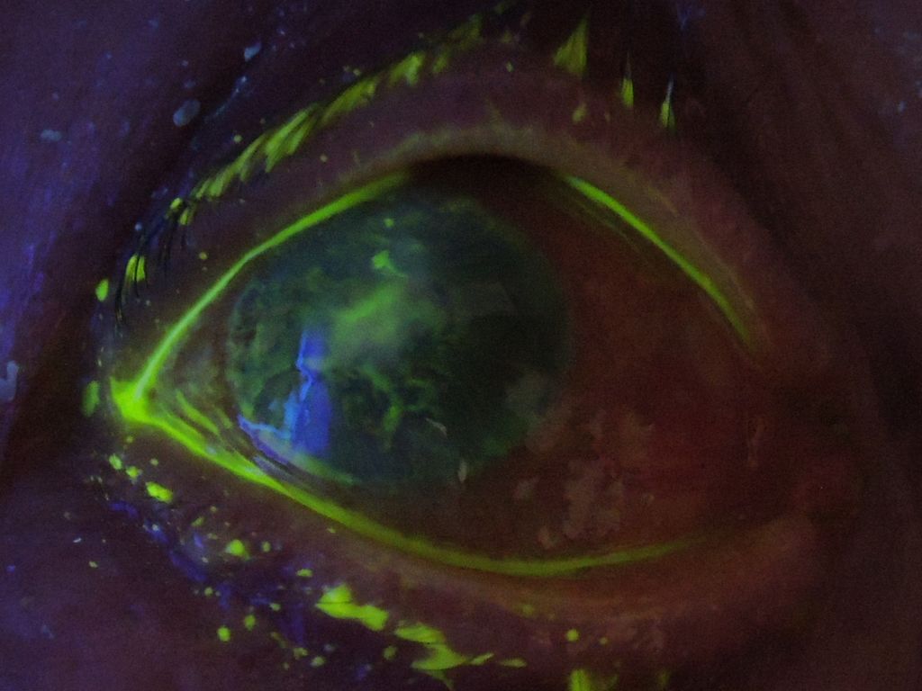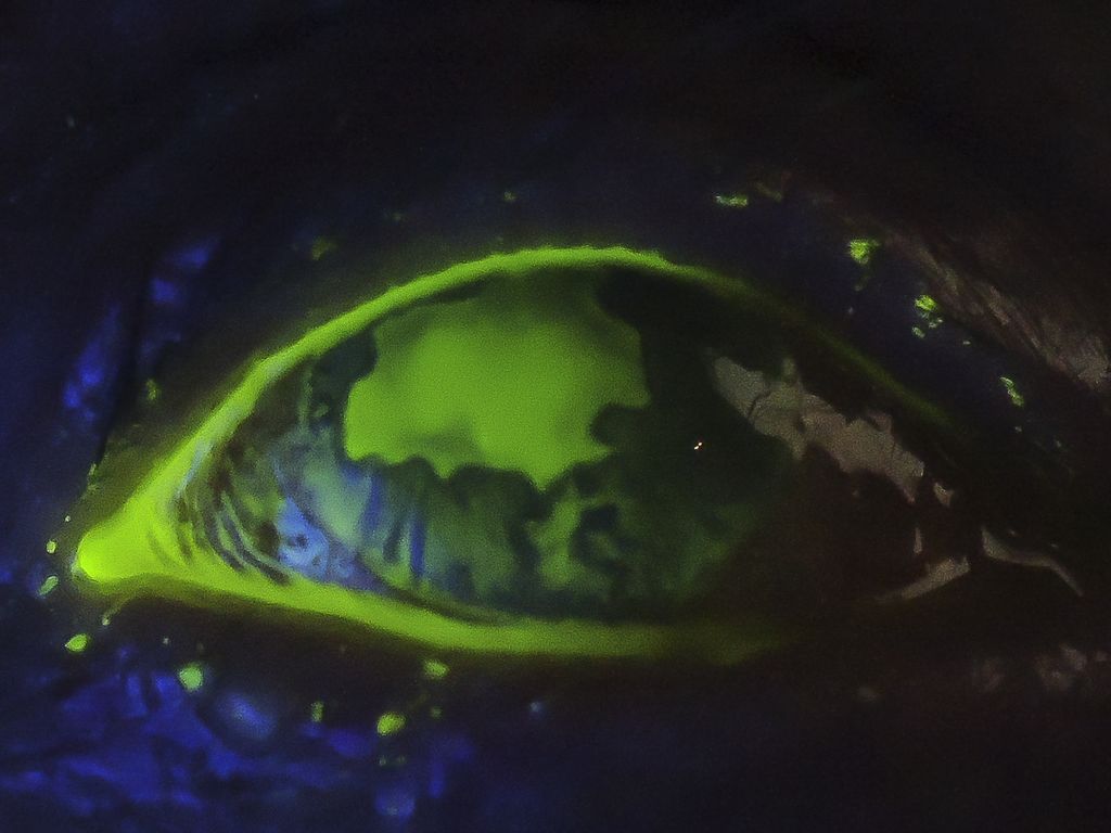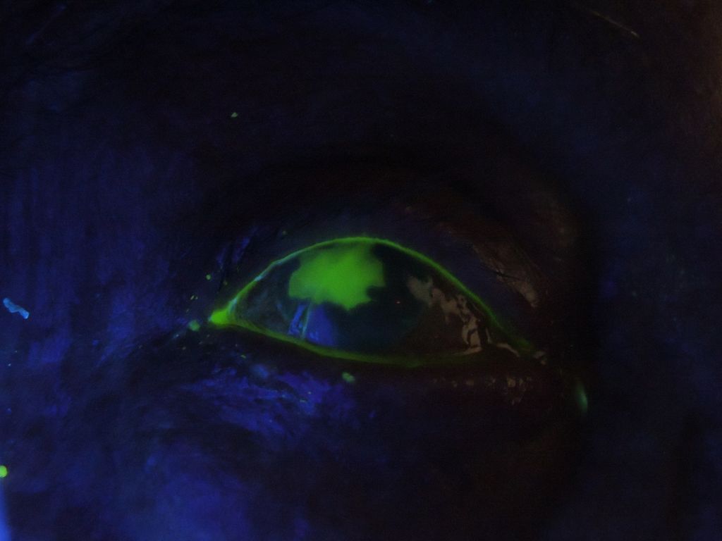Herpes corneal. Fluoresceína y luz de Wood. Distintas fases evolutivas.