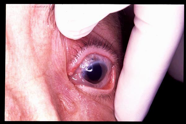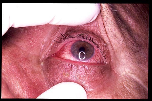 Conjuntivitis bacteriana sobre ictiosis lamelar.