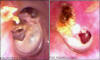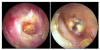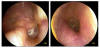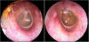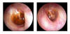 JFC otopatía supurativa crónica inactiva (der) y con colesteatoma atical (izq)