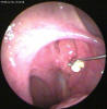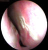 JFC Rinosinusitis poliposa exteriorizándose por fosa nasal izquierda.