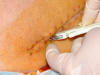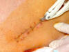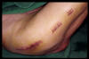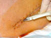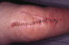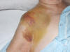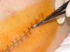 Fractura de húmero. Aspecto externo tras intervención y osteosíntesis.