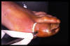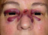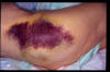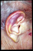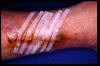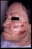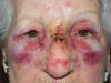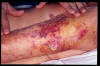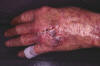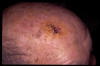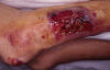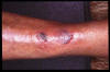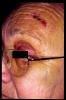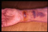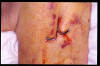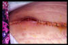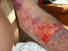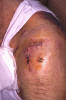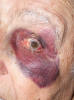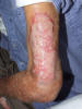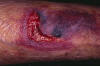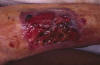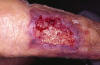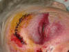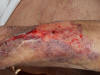 Fragilidad cutánea en EPOC en tto crónico con corticoides. Intento fallido de mantener la zona lesionada. Area central desvitalizada.