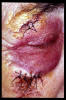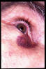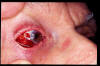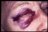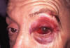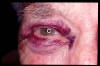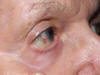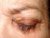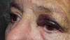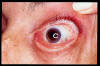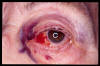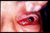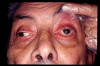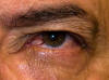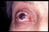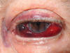 Fístula carótido-cavernosa postTCE con exoftalmos y quemosis.