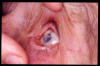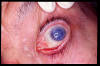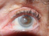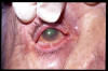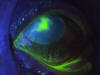 Herpes corneal. Fluoresceína y luz de Wood. Distintas fases evolutivas.